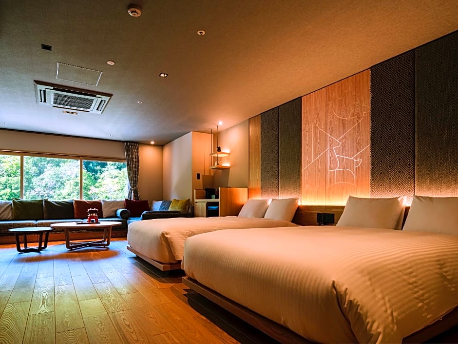Indulge in a spacious Japanese-style family room, connected to a restaurant, offering a stunning view, complete with air purifiers and free toiletries. Relax on the 4 comfortable futon mats after enjoying a meal together.